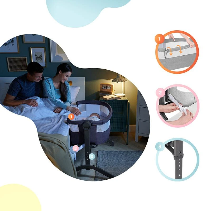 - 7 niveaux de hauteur, grâce auxquels vous pourrez ajuster le lit cododo à la hauteur du vôtre sans problème