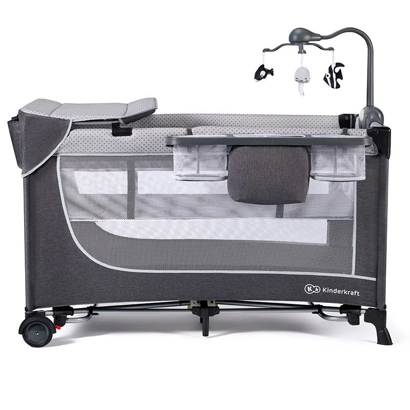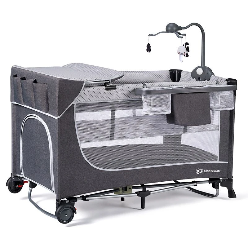Découvrez notre lit parapluie Kinderkraft Leody Grey avec accessoires