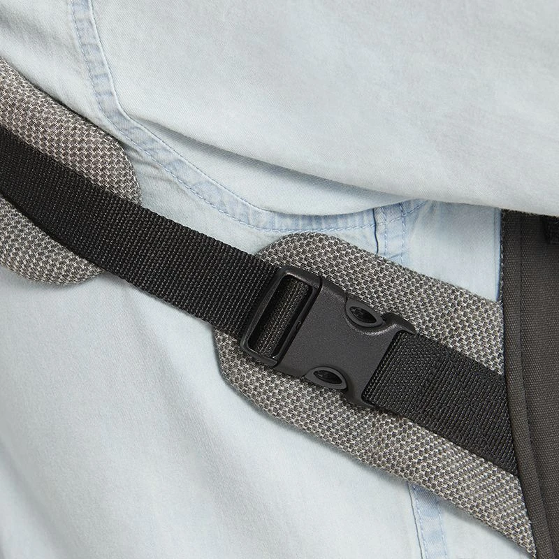 - Ceintures larges, souples et réglables: ventrale et épaulières