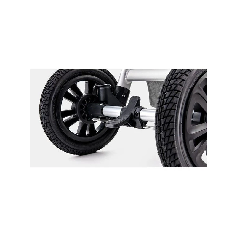 - Très grandes roues arrière (diamètre 31 cm) : bande de roulement en caoutchouc épais qui ne ne nécessite pas de gonflage. L’essieu arrière est muni d’un frein central