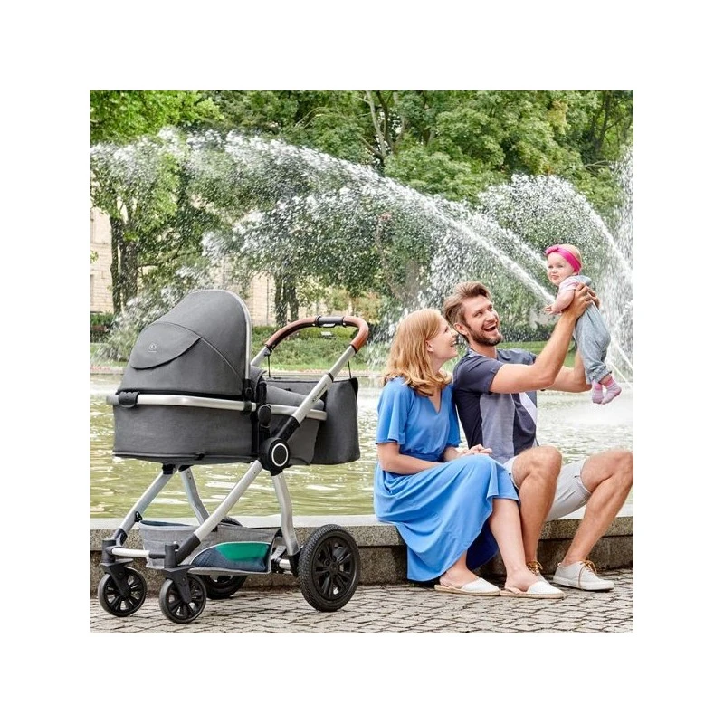 - Accessoires inclus : habillage pluie, couvre-jambes, adaptateurs pour sièges-auto, panier shopping et sac à fermeture éclair (poche supplémentaire à l’intérieur)