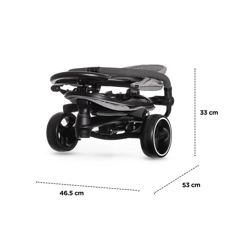 - Roues (diamètre): avant 22 cm, arrière 16 cm